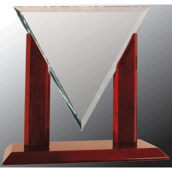 10 1/4″ Diamond Triangle Clear Glass with Rosewood Piano Finish Base