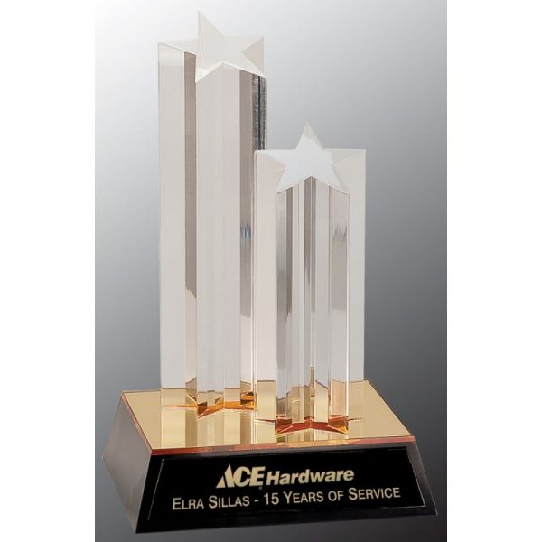 9 1/2” Clear Double Star Column Acrylic with Gold/Black Base