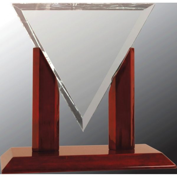 8 1/4″ Diamond Triangle Clear Glass with Rosewood Piano Finish Base