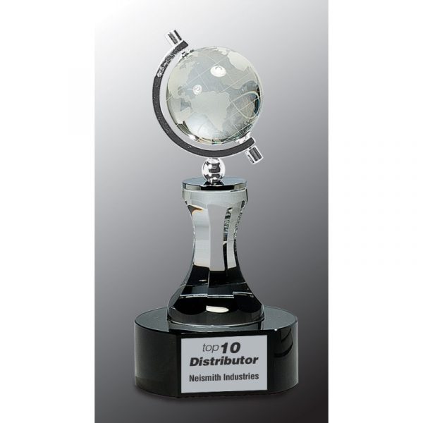 8 1/2″ Crystal Spinning Globe with Clear Tower on Black Base