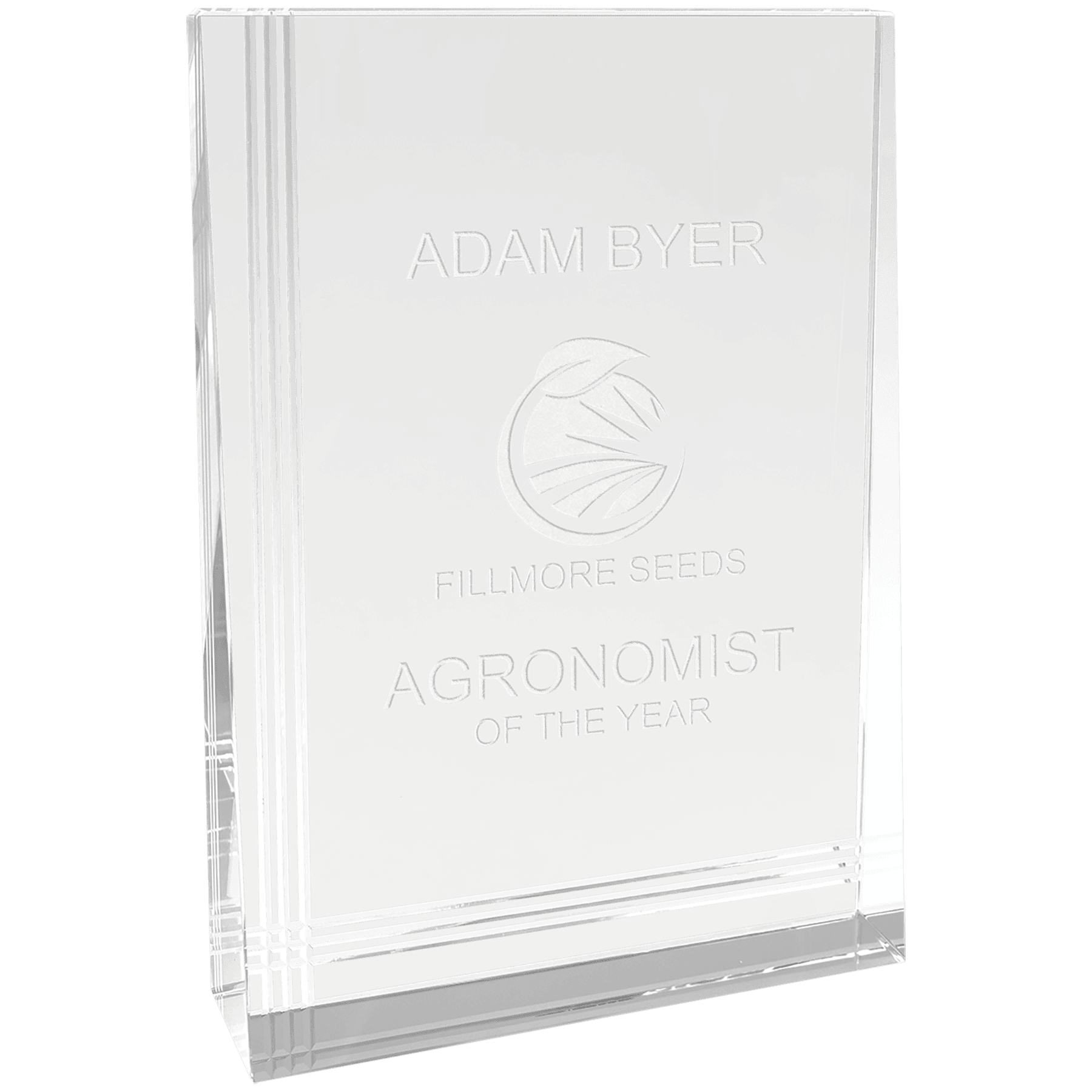 A beautiful glass peak sits on top of an attractive walnut base creating an award that is perfect for recognizing achievement or milestones reached. Both the glass and the walnut base can be engraved, giving you options for personalization. This stunning glass peak award is available in 2 sizes.