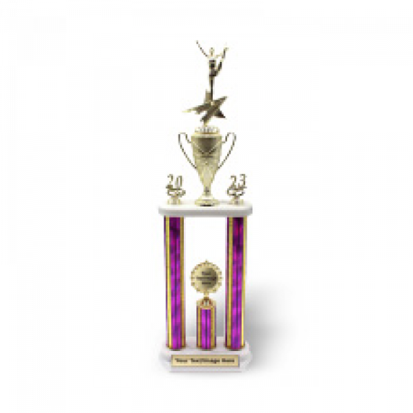 Trophies can be customized based upon your activity/sport which will be selected under the topper detail, along with the column style and color. With a Double Column Trophy, there is space for a figure and/or trophy cup on the top lid. 2 trim pieces will be selected to hold the columns in place. Double Column Trophies are recommended to be built up to a 16” column
